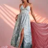 - Deep V-neckline with halter straps for a sultry yet elegant look.